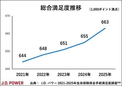 本調査は、直近1年以内に生命保険の保全の手続きや連絡を行った顧客を対象に調査を実施している。本年の総合満足度(調査平均)は663pt(1,000ポイント満点)と、前年調査(2024年3月発表)と比較して+8ptの向上が確認された。本調査でランキング公表を開始した2016年以来1 、過去最高のスコアを更新している。